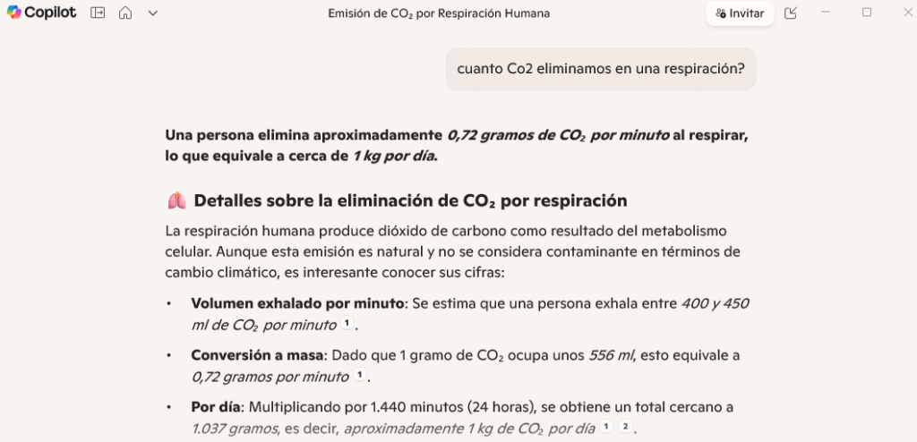 Y esto es lo que dice copilot, falta saver la frecuencia respiratoria de copilot. Pero se puede aproximar.