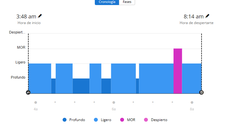 Esto indica malo, ya el segundo día al tercer ya es preocupante. Poca oxidación casi nada de calorías consumidas y vuelvo a engordar si como y mañana creo que va ser como hoy. Parece que queme más calorías durmiendo, pero es con menos frecuencia cardiaca y menos, frecuencia respiratoria